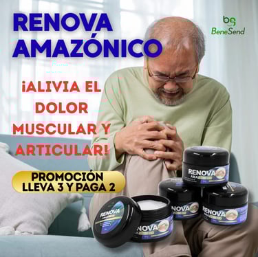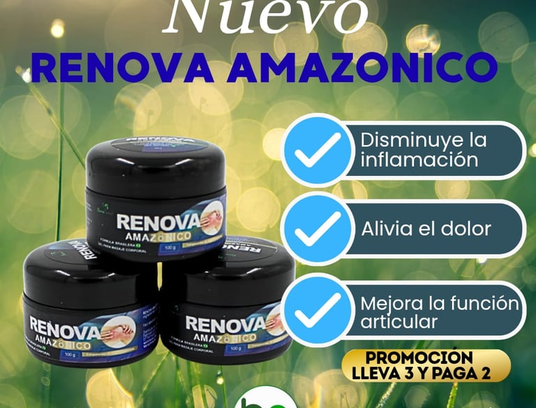 Cuida la salud de tus articulaciones, musculos y mejora tu movilidad con Renova Amazónico, formulado con ingredientes amazónicos naturales. Ideal para tratar los sintomas de artritis, artrosis o rigidez articular.
